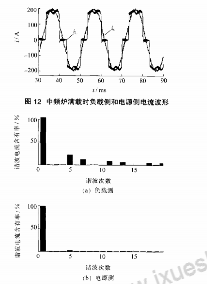 晶閘管中頻電源的應(yīng)用是從1996年瑞士BBC公司研制成功第一臺感應(yīng)熔煉電源開始的.并得到了廣泛應(yīng)用.遍及熔煉、透熱、種子處理、環(huán)保等多個領(lǐng)域…國內(nèi)晶閘管中頻電源已發(fā)展成為電力系統(tǒng)中最重要的非線性負(fù)荷由于中頻電源裝置在實現(xiàn)功率控制和處理的同時.會不可避免地產(chǎn)生非正弦波形,向電力系統(tǒng)注入諧波電流.使公共聯(lián)結(jié)點(PPC)的電壓波形嚴(yán)重畸變.使電網(wǎng)電能質(zhì)量嚴(yán)重下降.電能損耗顯著上升.被公認(rèn)為電力系統(tǒng)的一大公害。諧波治理工作尤為重要E2]為減少中頻爐帶來的諧波污染,國內(nèi)已采用多脈動整流技術(shù)研制出了多種中頻爐設(shè)備,包括6脈,l2脈,24脈中頻爐等,由于后兩者成本相對較高.因此大多煉鋼企業(yè)仍舊采用6脈動中頻爐進(jìn)行金屬熔煉.其諧波污染問題仍不能忽視現(xiàn)階段對于中頻爐諧波的治理方法主要有2種方法:一種是補(bǔ)救性的治理方法.即為克服既存諧波問題所采用的方法:一種是避免中頻爐諧波出現(xiàn)的預(yù)防性的措施[3]。雖然第二種方法可以從根本上解決日益嚴(yán)重的諧波污染.但對于現(xiàn)已大量使用的中頻爐.則只有采用第一種方法補(bǔ)償其產(chǎn)生的諧波將結(jié)合中頻爐的工作原理及其諧波治理措施進(jìn)行討論.提出利用有源濾波器(APF)對6脈中頻爐工作的不同階段產(chǎn)生的諧波進(jìn)行補(bǔ)償與治理分析